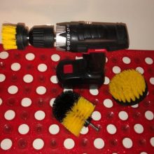 How have I lived without this? I used the heads to clean my shower and my cabinet doors in my kitchen. I am using different heads for different areas of the house. My kitchen cabinets are painted and I was scared that the power of the drill with the coarse brush would take off the paint but it only happened once. It was my fault. I pushed way too hard and the drill went on its side and the base of the brush went on the cabinet. Oops. I love these. You need to buy.