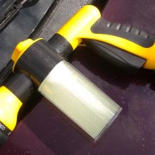 Lightweight and easy to hold. Only thing I don’t care for is the position of the on/off lever. Awkward to me to have the thumb lever up for off. The lever being down for off makes for a more comfortable hold and control for me instead of having to reposition my hand or having to Involve a second hand. This sprayer replaces another one I have had for a while, so maybe I find the new one awkward due to the thumb lever being down for off on my old one