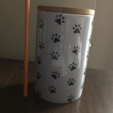 I love the way this container looks on my counter! It looks like a cute design until you get close enough to realize they’re paw prints - which everyone compliments and thinks is so cute!